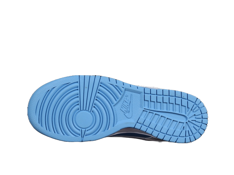 La tomaia è realizzata in pelle di alta qualità, con una base in bianco, che crea un aspetto pulito e versatile, facilmente abbinabile a qualsiasi outfit. Le sovrapposizioni in University Blue, un celeste chiaro ispirato ai colori storici di UNC, sono posizionate in modo strategico per un contrasto visibile, rendendo questa Dunk un vero pezzo di stile. Il Swoosh laterale, insieme ai dettagli in Royal Blue, aggiungono un ulteriore livello di contrasto e vivacità, completando il design con un tocco di freschezza.